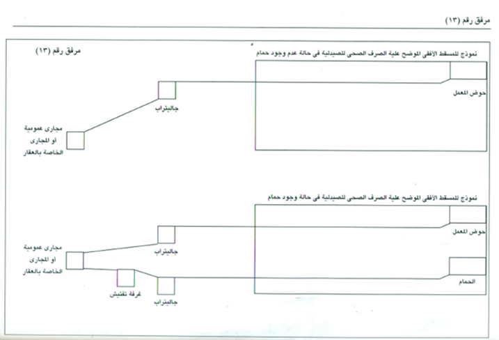 9- أن تكون أرضية المكان المراد ترخيصه فى ذات مستوى الطريق المجاور لها ويجوز الإستثناء من ذلك بشرط إتخاذ الاحتياطات الكافية التى تمنع تسرب المياه إلى داخل الصيدلية عن طريق عمل شبكة صرف قبل مدخل الصيدلية دون إخلال بسلامة دخول وخروج المرضى من  وإلى الصيدلية , وفى جميع الأحوال لا يجوز ترخيص المؤسسة الصيدلية داخل بدروم أو جراج .