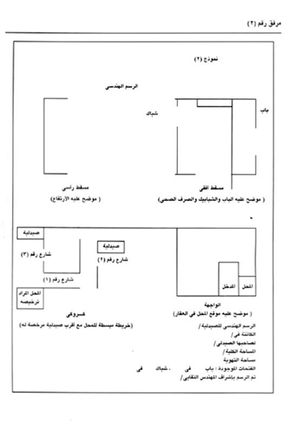 صورة معتمدة من الرسم الهندسي وكذلك دفاتر الصيدلية بعد اعتمادها وأتعهد بحفظها بالصيدلية وتقديمها عند كل طلب وأن أقوم بإبلاغ مصلحة الضرائب.